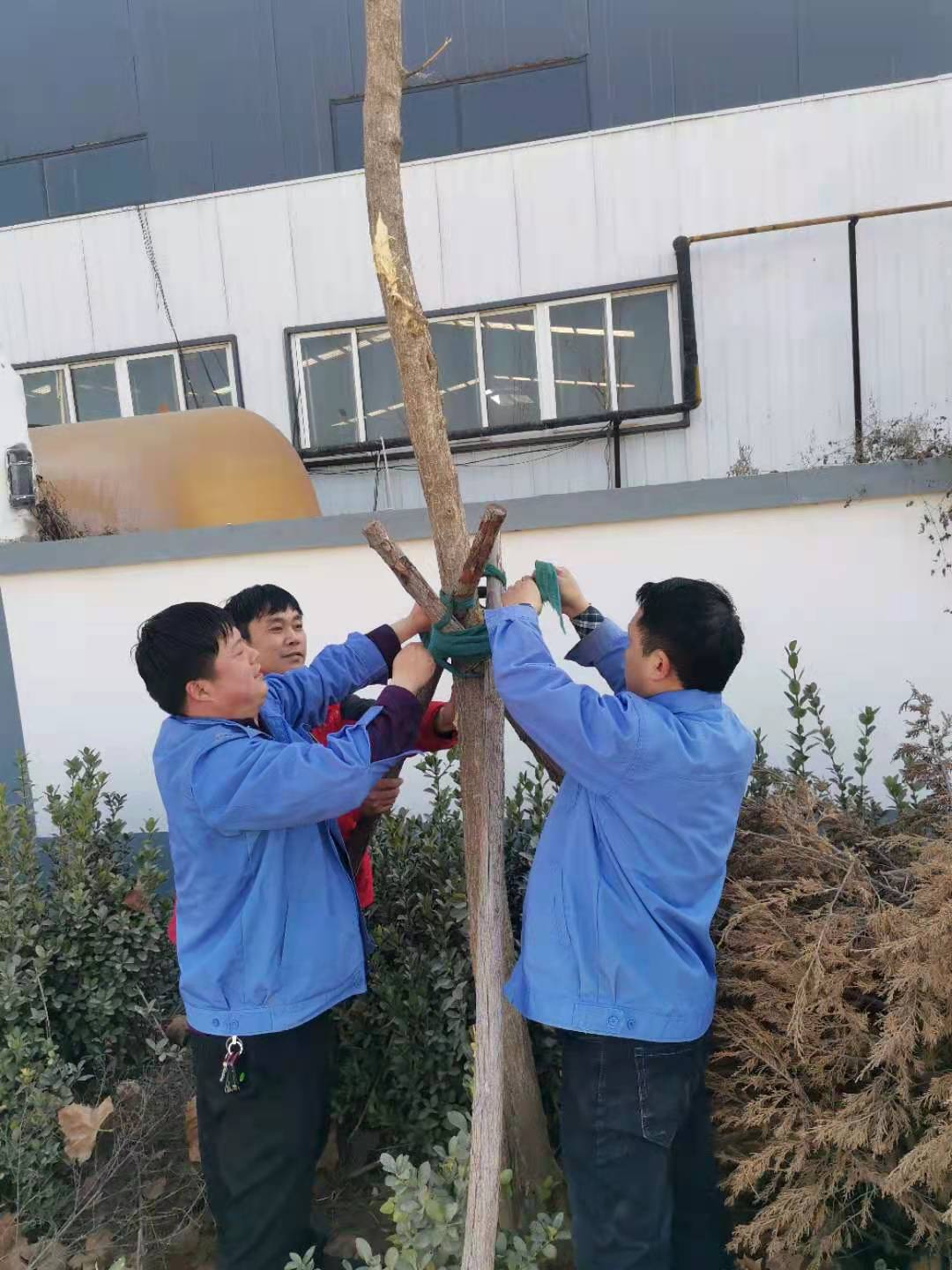 2月20日下午,公司組織全體行管人員,與車間負(fù)責(zé)人30余人參加“植樹造林,綠化廠區(qū)”主題活動(dòng)。在廠區(qū)北墻外綠化帶,種植國(guó)槐36棵。大家積極踴躍參加植樹義務(wù)勞動(dòng),不怕苦,不叫累,相互協(xié)作,相互配合,有的挖坑,有的抬樹、有的種樹、有的澆水,通過(guò)兩個(gè)小時(shí)的勞動(dòng),圓滿完成了植樹任務(wù)。